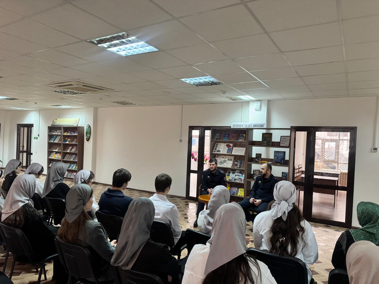 В профилактическом часе приняли участие старший инспектор по особым поручениям отдела пропаганды УГИБДД МВД по ЧР майор полиции Цугаев Артур и инспектор отдела пропаганды УГИБДД по ЧР майор полиции Бектомиров Муса и студенты ЧГК.